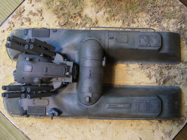 砲塔、双胴ホバー部は、完全ムクではなく軽量化のため肉抜きしています。ホバー部は、それぞれ前後で2分割しています。