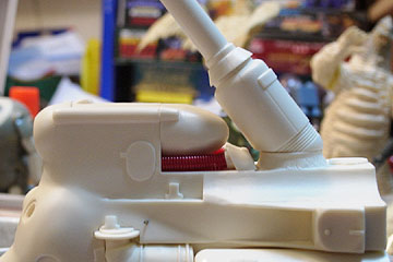下方レーダーは本体に対しほぼ垂直にしないとあとで干渉しますのでご注意ください。コイルスプリングは画像の赤以外に白、青と別の色が入ってる場合もありますが、東急ハンズの在庫の問題で他意はありません(笑)。スプリングは後方をパーツに先に接着してから本体に接続し、前方は瞬着を流し込み固定します。